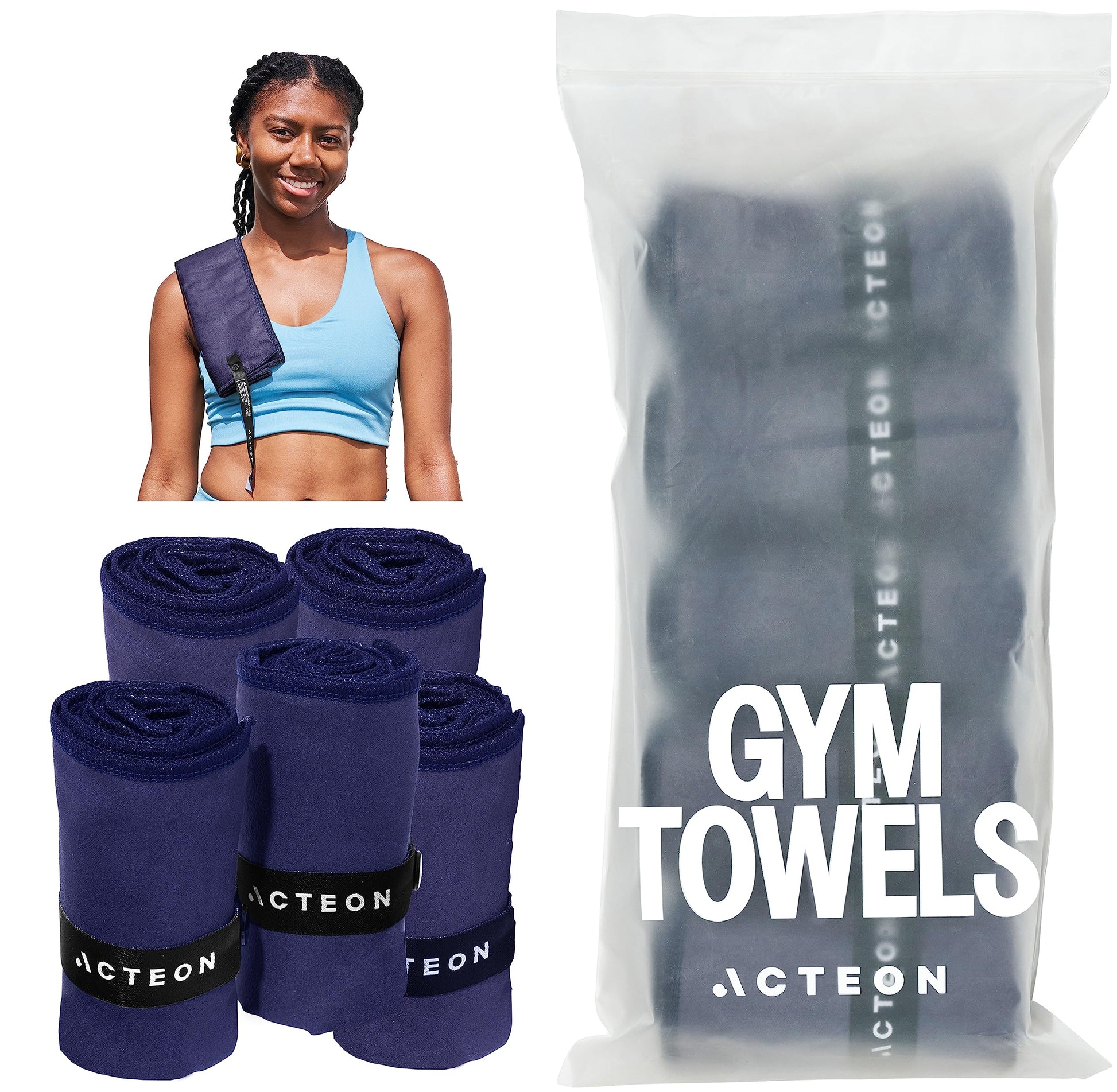 - DURABLE MICROFIBER GYM TOWEL: Each easy to wash towel has its own color coded stitching so you can use a different one each day of the week. Acteon's thin towel will also easily hang over your neck or shoulder for the optimal workout experience.
