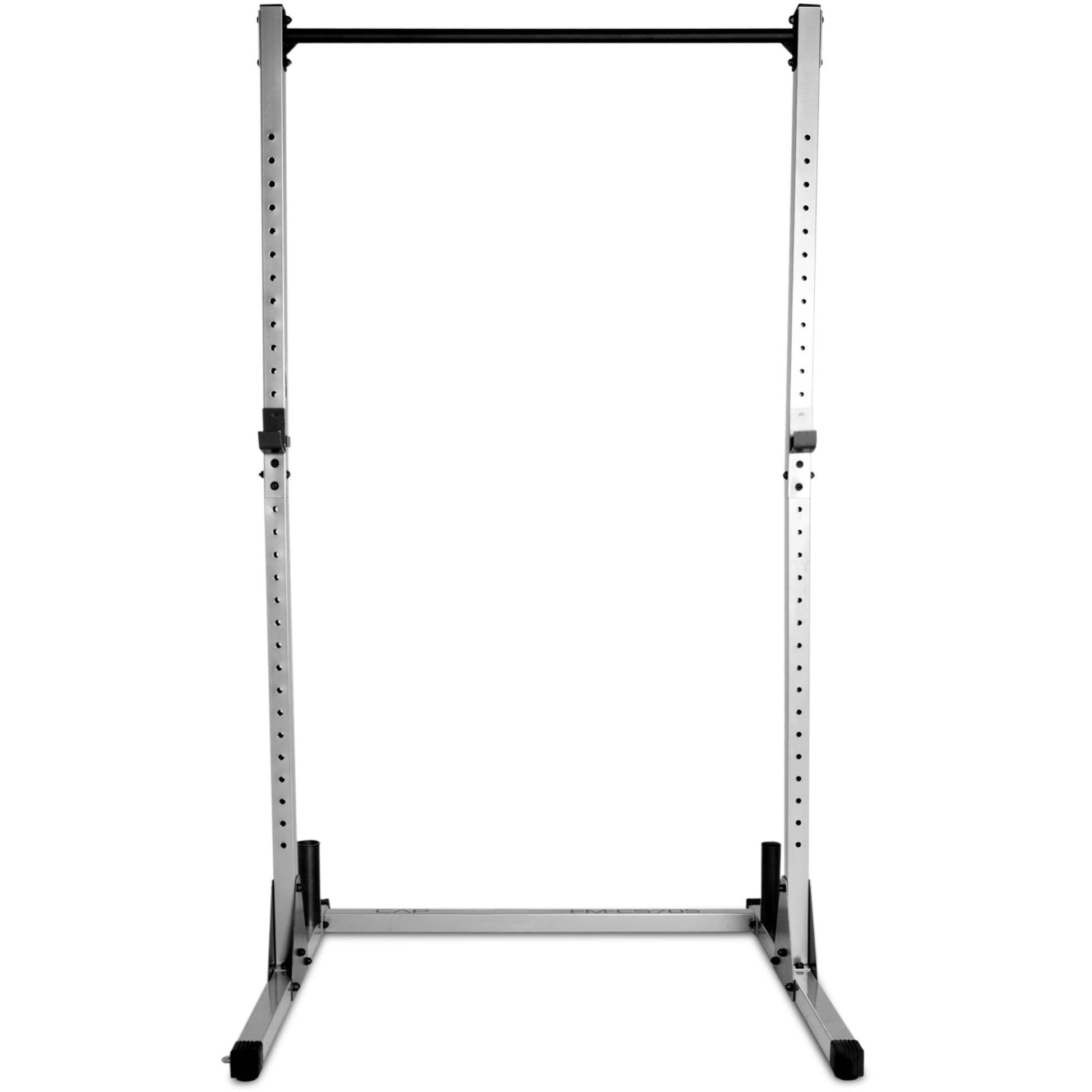 Details: This CAP Power Rack / Squat Stand is a serious piece of strength equipment. Designed for heavy use in mind, this must-have strength piece utilizes 11- and 12- gauge steel that will withstand the most grueling workout. Eliminate the need for a spotter with the j-cup catches that have a weight capacity of 500-pounds. Build upper body mass and perfect the pull up by using the pull up bar. Store your barbell and weights with the built-in bar and weight storage features. The double gusseted uprights provide exceptional stability and security, allowing you to lift heavy without compromising safety. Perform bench presses, overhead presses, pull ups, shrugs, squats and more with this power rack / squat stand (a weightlifting bench is necessary for some of these exercises, which is not included). All CAP Strength products undergo strenuous product testing based on ASTM standards. Engineered and manufactured with quality materials are the reasons that CAP Strength products are among the best-selling strength products on the market today. Assembled dimensions are 46" wide x 50" deep x 85" high. Includes a 30-day manufacturer’s warranty.