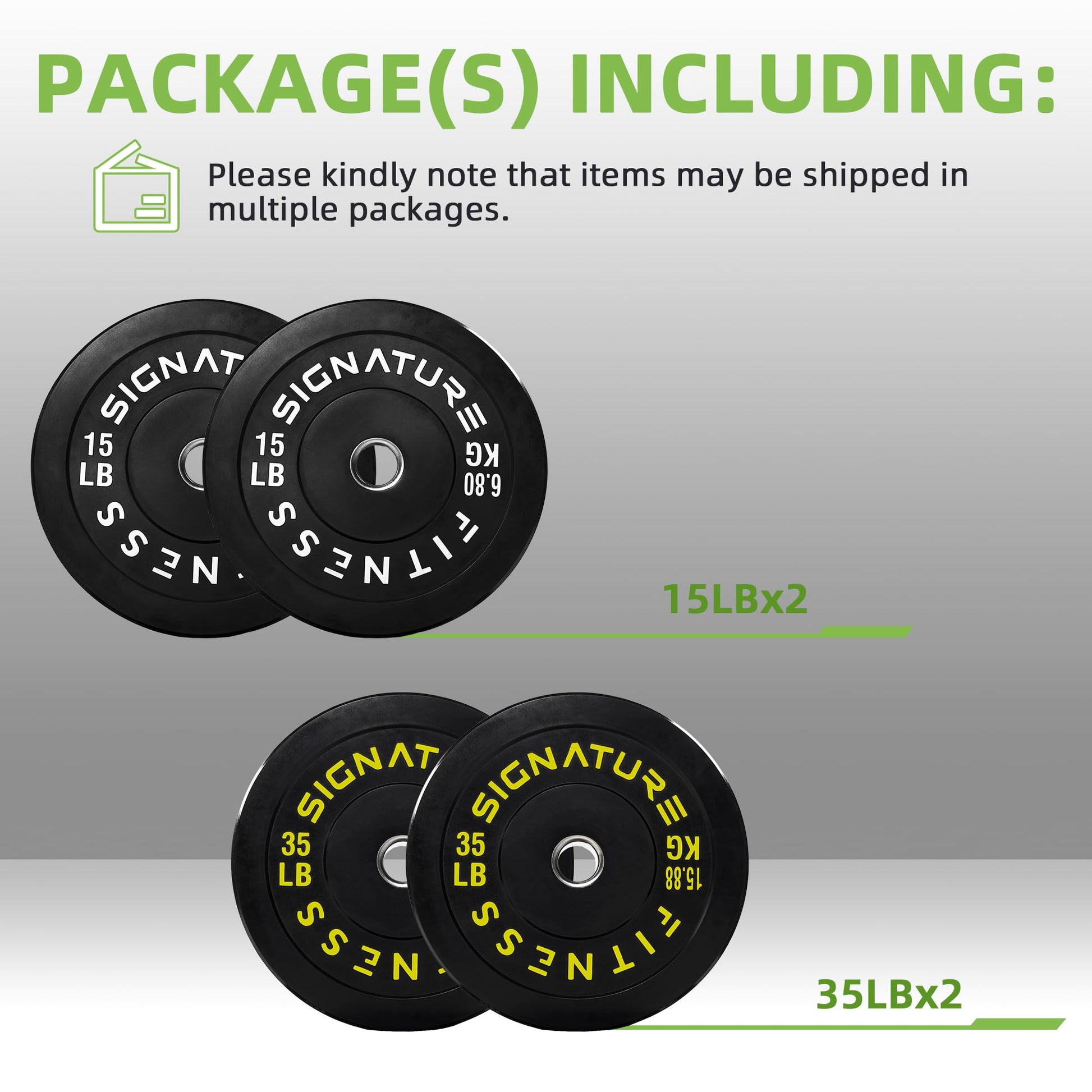 Details: Fitvids Olympic Bumper Plates Set, 2" Weight Plates for Strength Training & Weightlifting, 100LB Set (15LB, 35LB), Multiple Packages