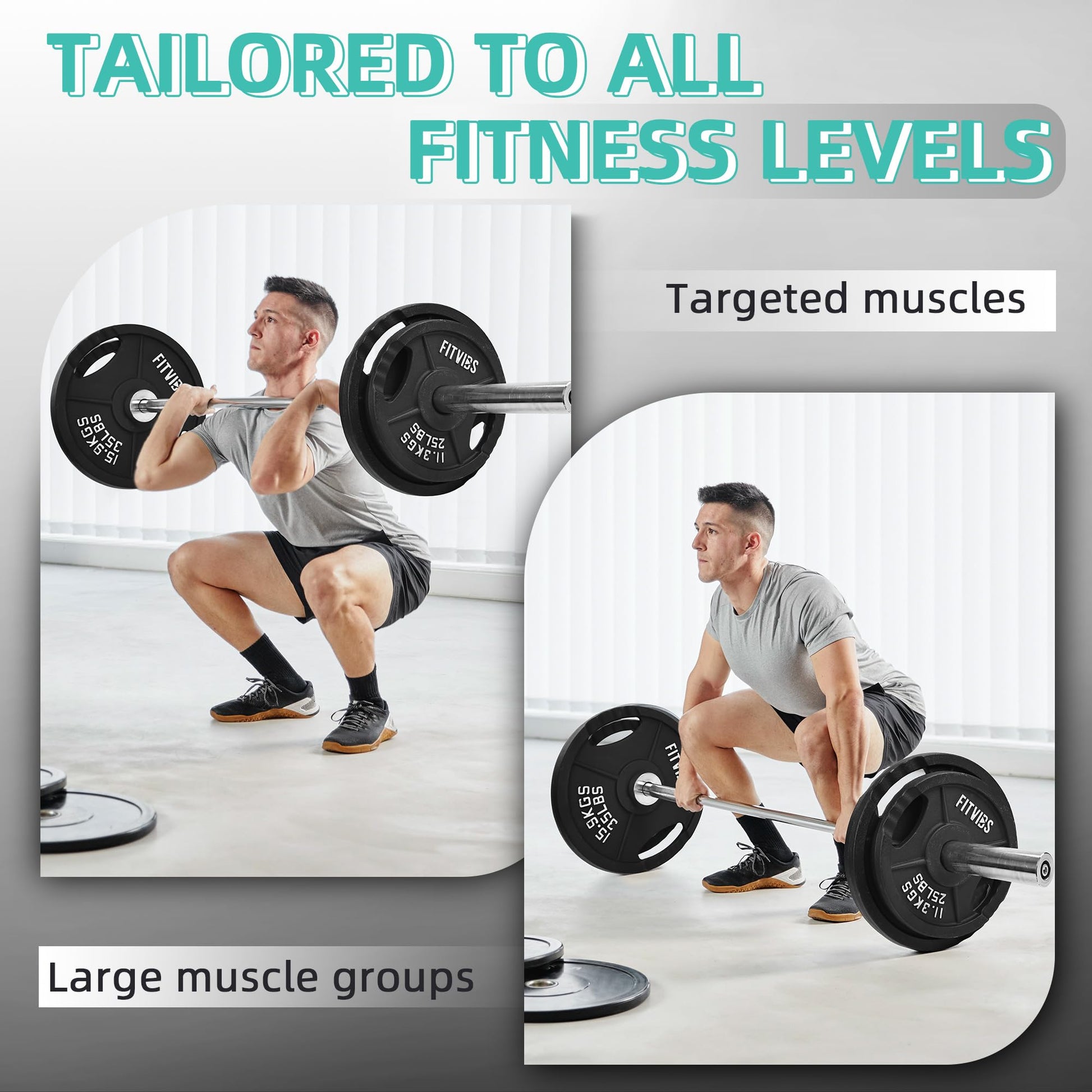 - The plates are made of solid cast iron with a 2-inch center hole that fits any Olympic bar with a diameter of 2". They can also be used with 2" dumbbell bars.
