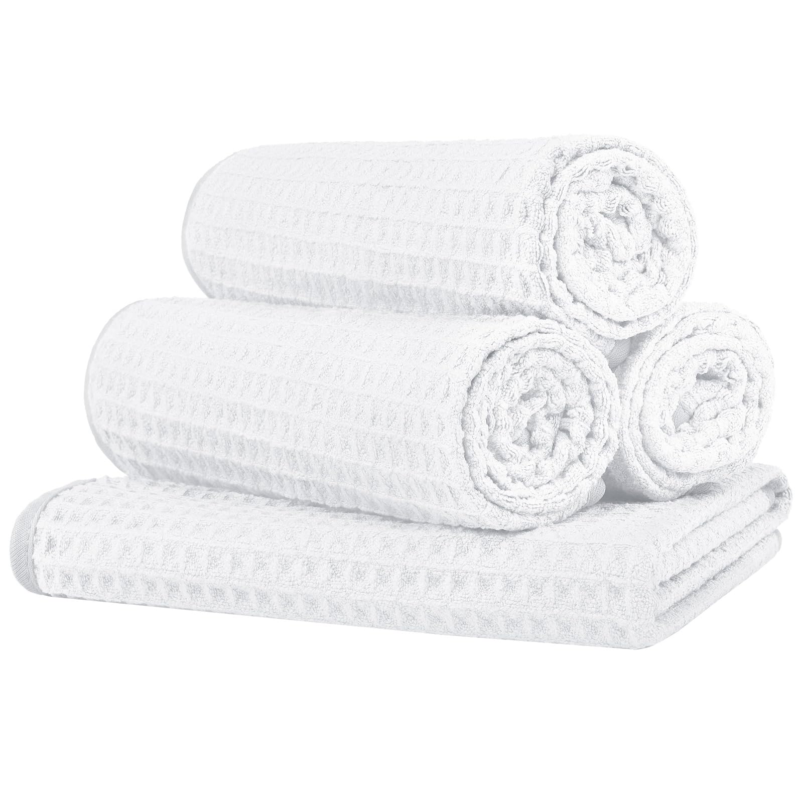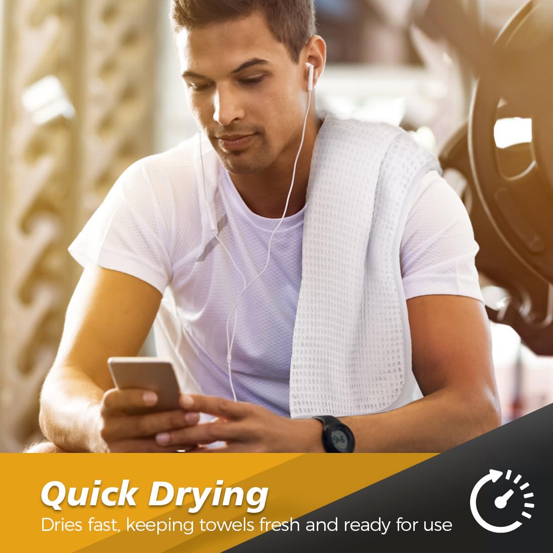 HOMEXCEL Premium Waffle Gym Towels 4 Pack (15x25 Inches) – Ultra Soft, Highly Absorbent & Quick Dry Microfiber Towels for Gym, Shower, Spa, Hotel & Kitchen | Cooling Workout Towels