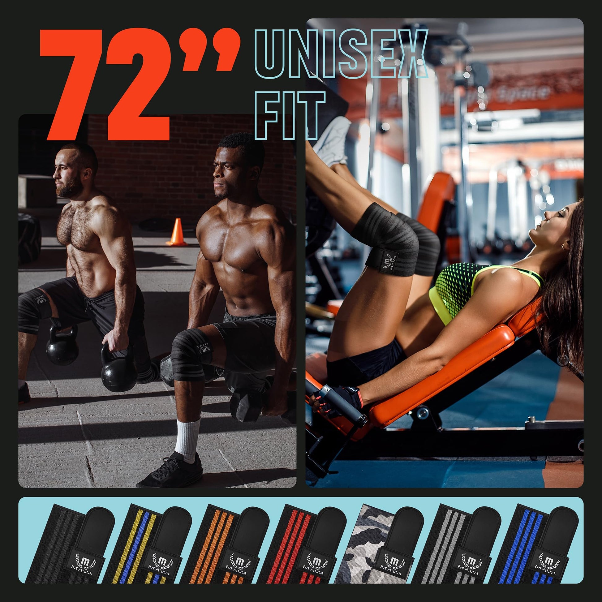 72" Elastic Knee Wraps for Men and Women, Pair of Compression Straps for Squats, Weightlifting, Cross Training, WODs, and Gym Workouts