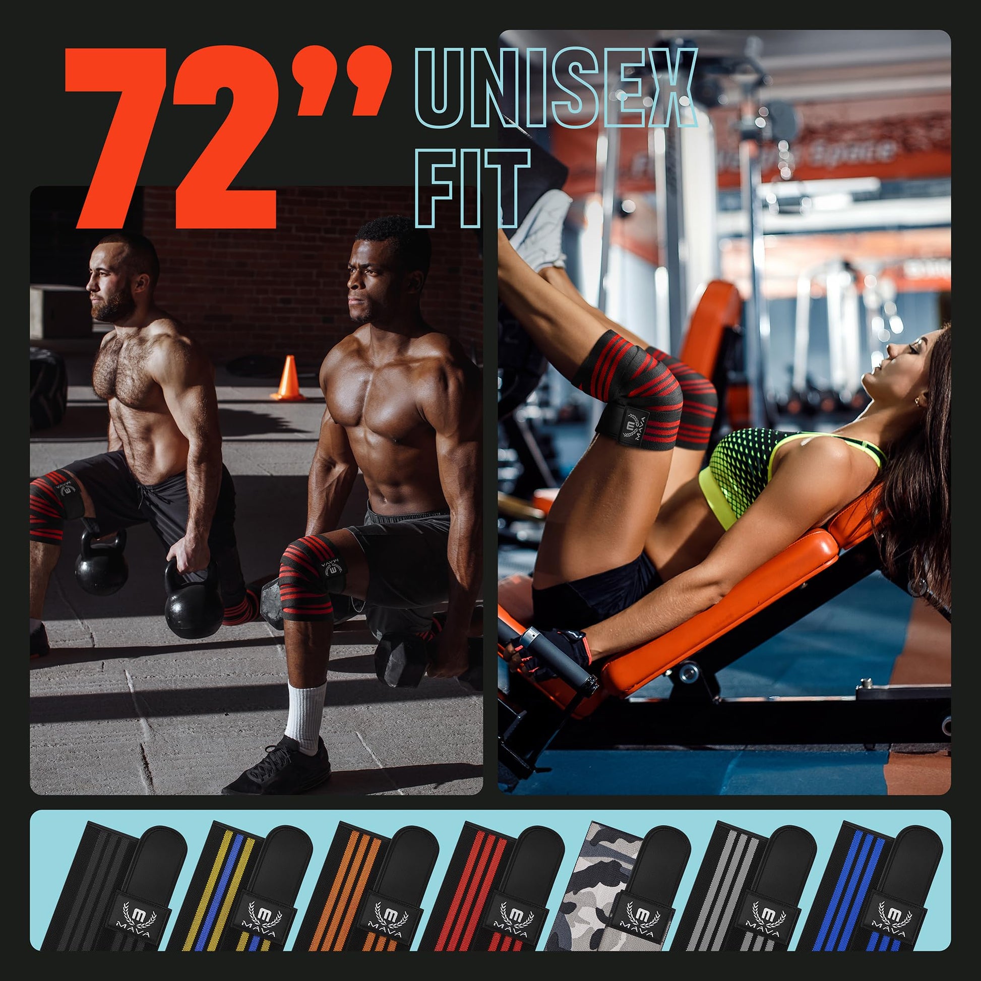 72" Elastic Knee Wraps for Men and Women, Pair of Compression Straps for Squats, Weightlifting, Cross Training, and Gym Workouts
