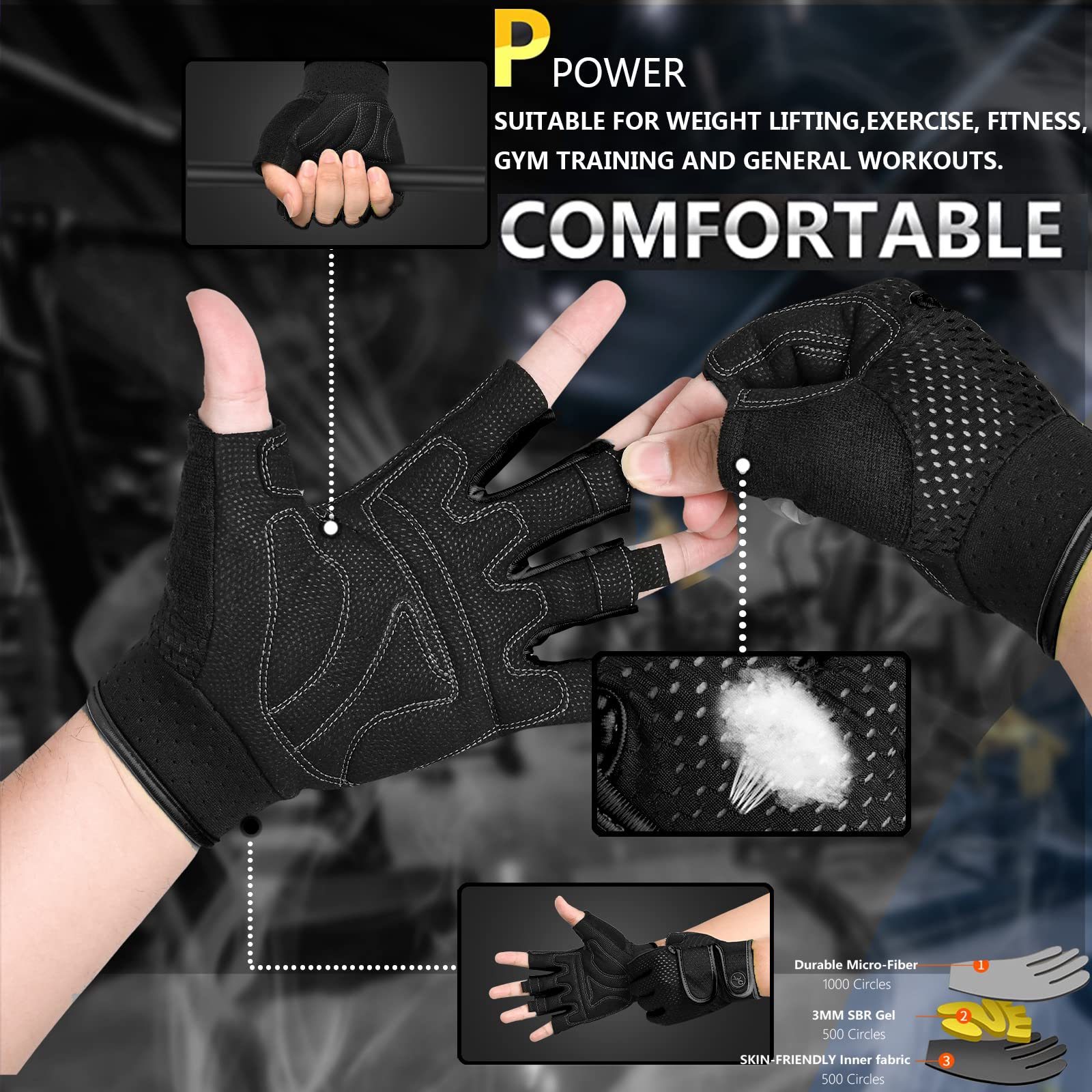 Padded Weight Lifting Gloves for Men and Women, 3MM Gel Fingerless Grip Gym Gloves for Exercise, Cycling, Pull Ups, and Rowing