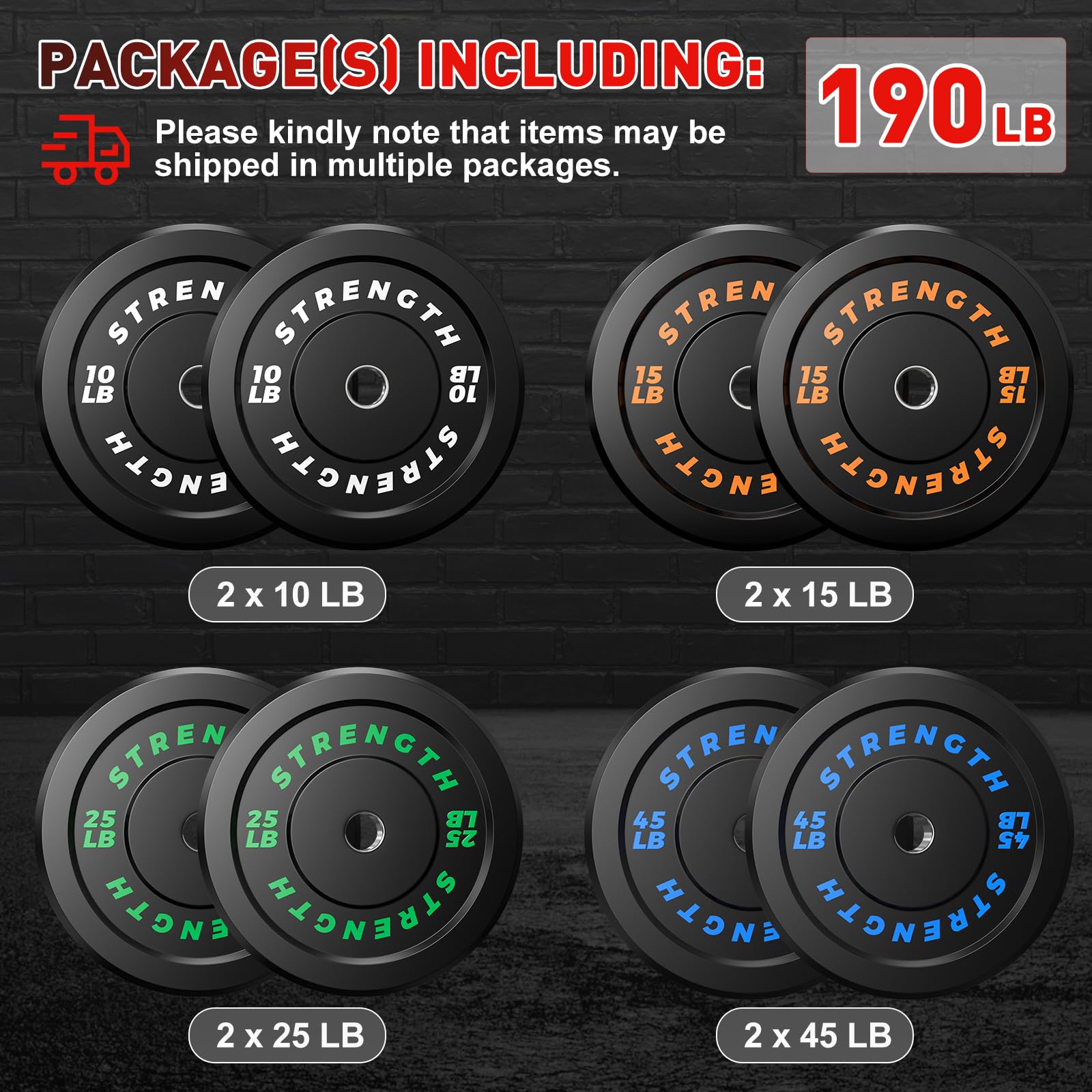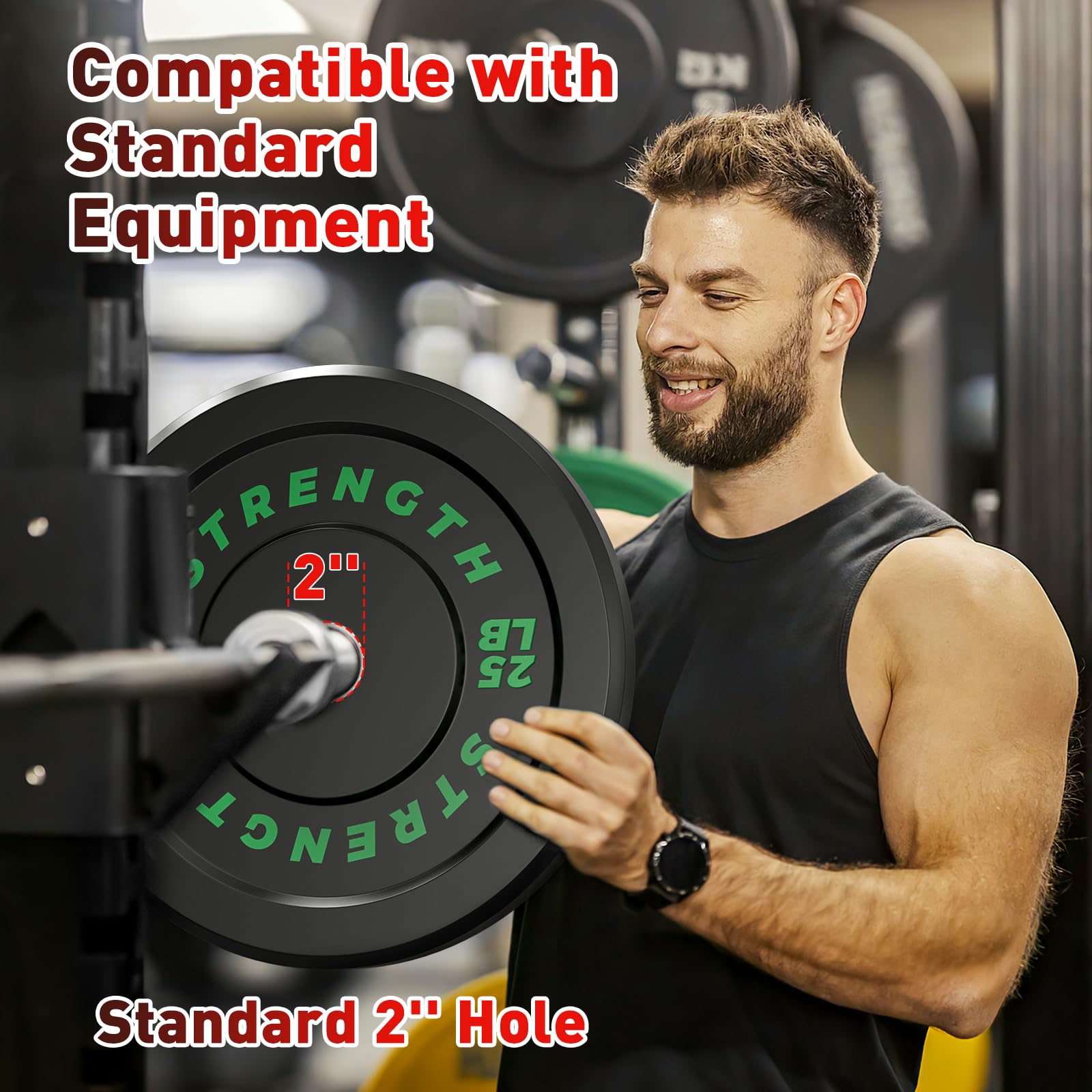 Olympic Rubber Bumper Weight Set – 2-Inch Barbell Plates for Home Gym Strength Training, Durable Rubber Coated Weight Plates for Powerlifting, Cross Training & Full Body Workouts