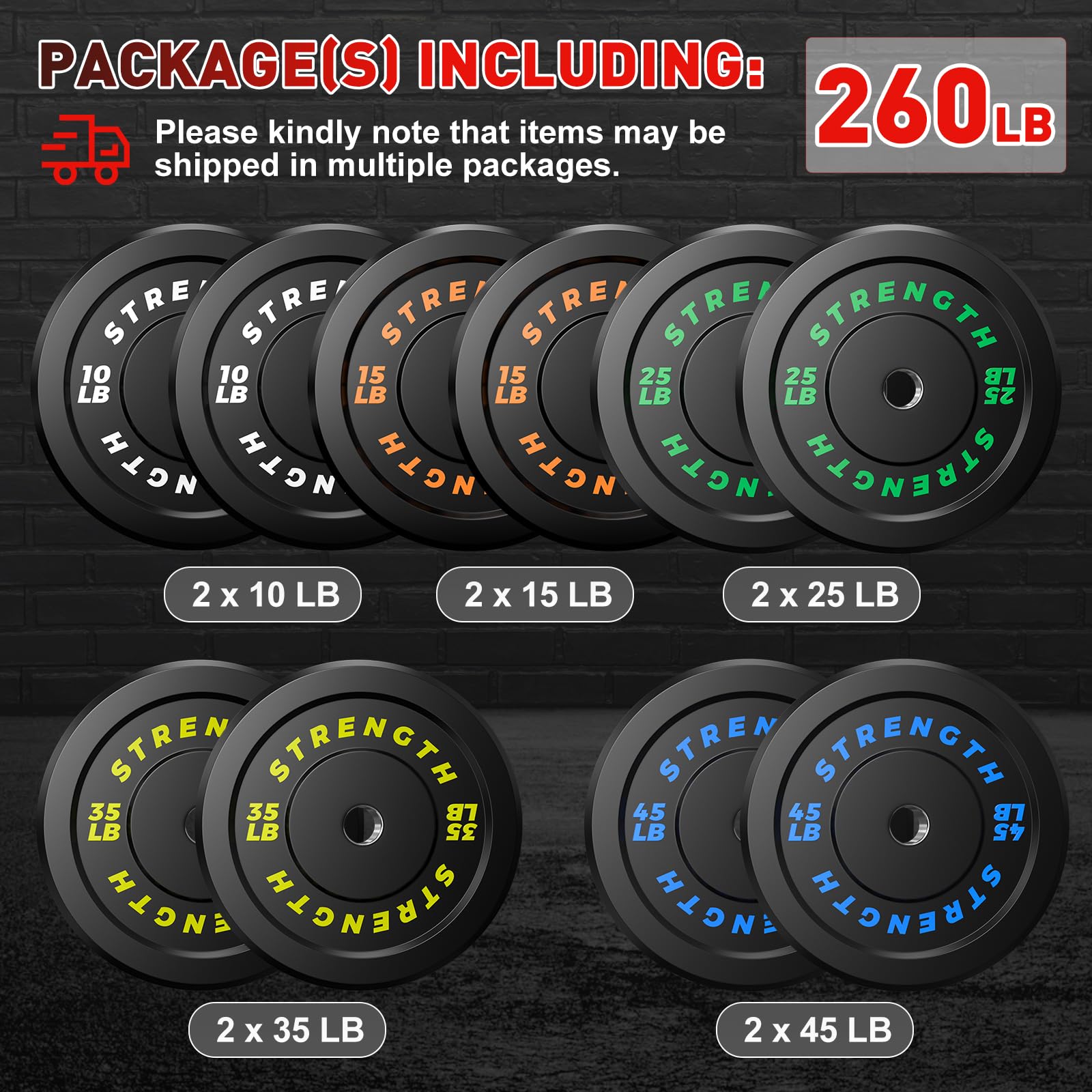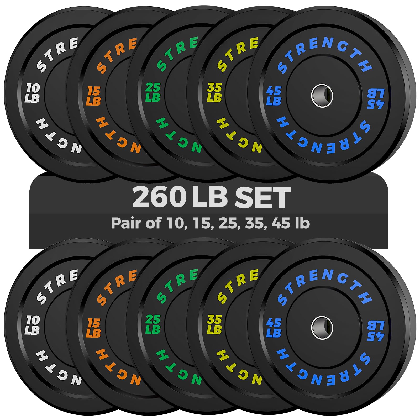 Olympic Rubber Bumper Weight Set – 2-Inch Barbell Plates for Home Gym Strength Training, Durable Rubber Coated Weight Plates for Powerlifting, Weightlifting, and Full Body Workout Equipment