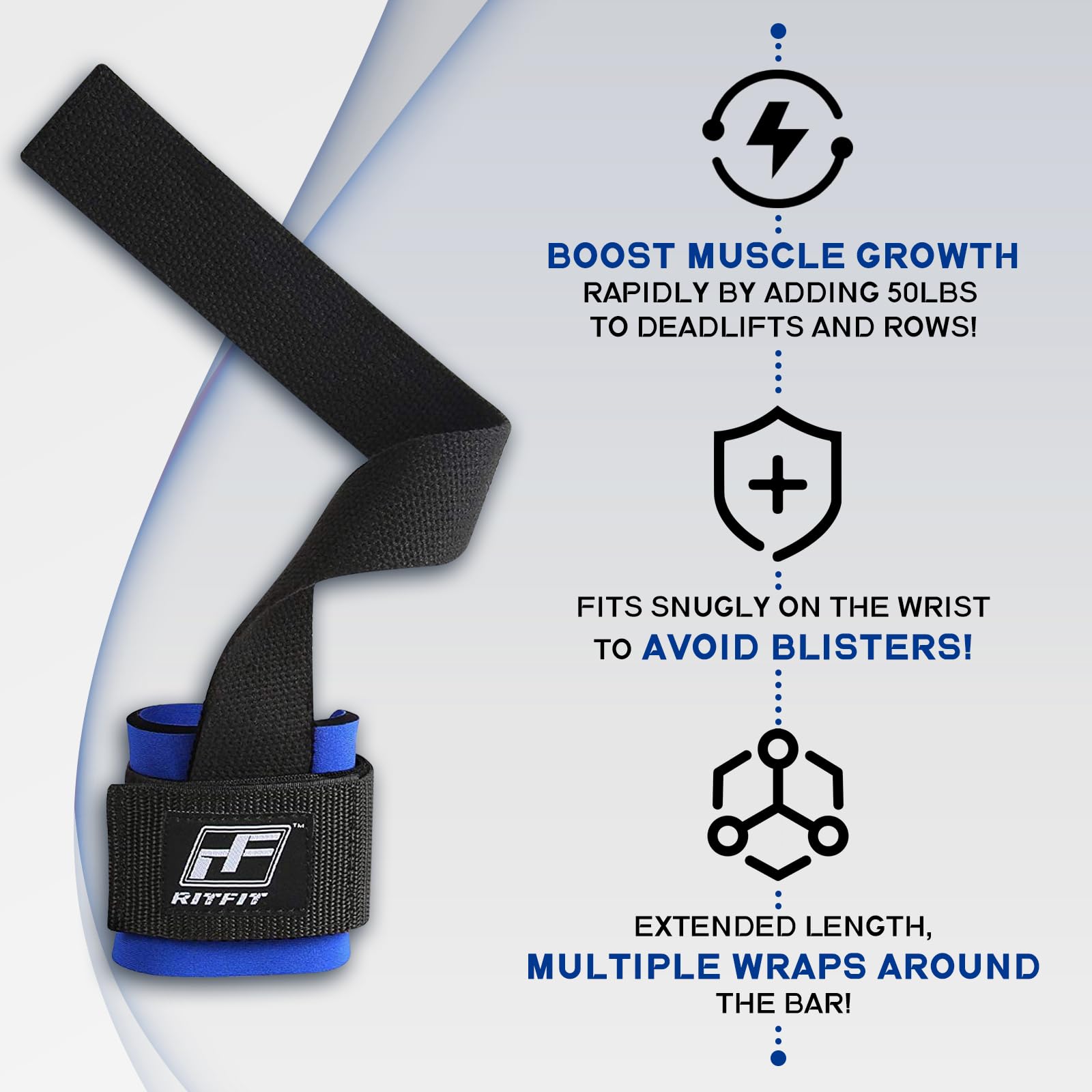 Wrist Straps for Weightlifting, RitFit Lifting Wraps for Wrist Support in Gym, Bodybuilding, Powerlifting, MMA, and Strength Training, Men and Women