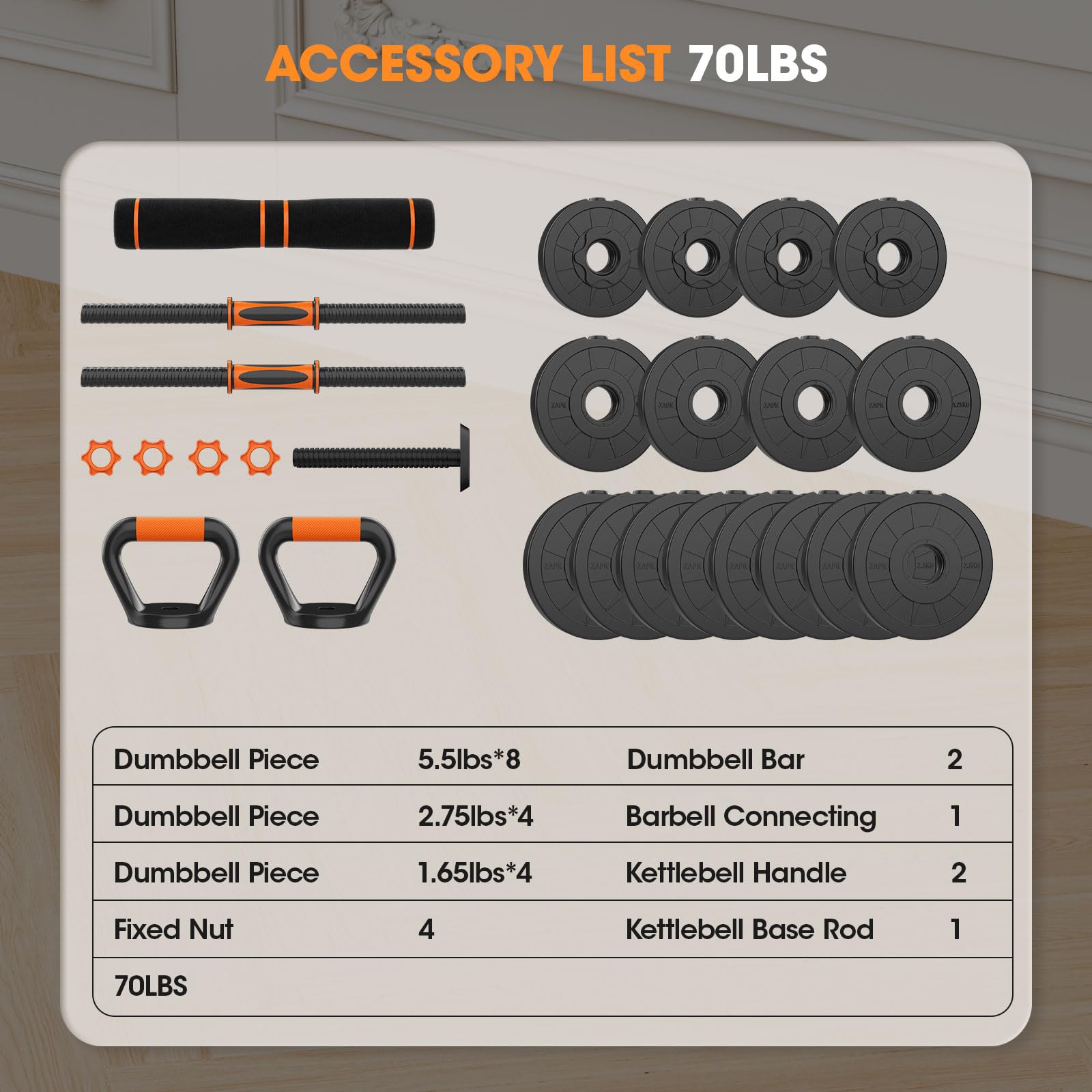 - 【4 in 1 Multifunctional Dumbbell Set】With the adjustable dumbbell set, it can boost your home workout level. Easily transform it into dumbbells, barbells, kettlebells, and push-up bars, switch exercise modes as you like. A 4-in-1 dumbbell set can meet your home gym needs and enjoy multi-faceted fitness
