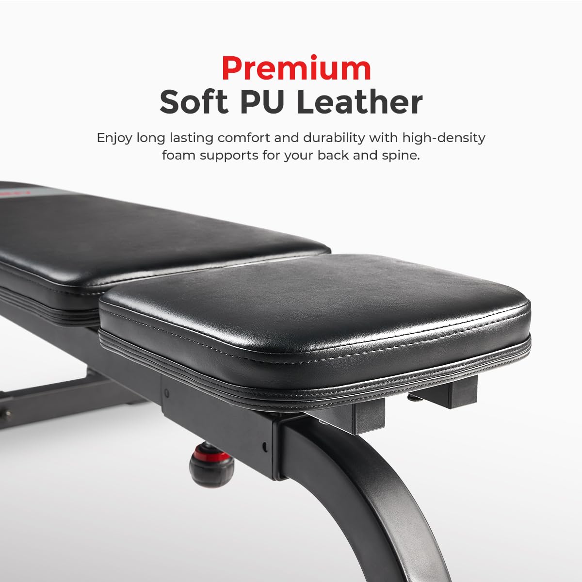 - 【EFFICIENT DESIGN】Optimally designed to fit into any home or gym, the bench’s compact dimensions ensure it takes up minimal space. This design ensures placement in tight areas without sacrificing the functionality or effectiveness of your workouts.