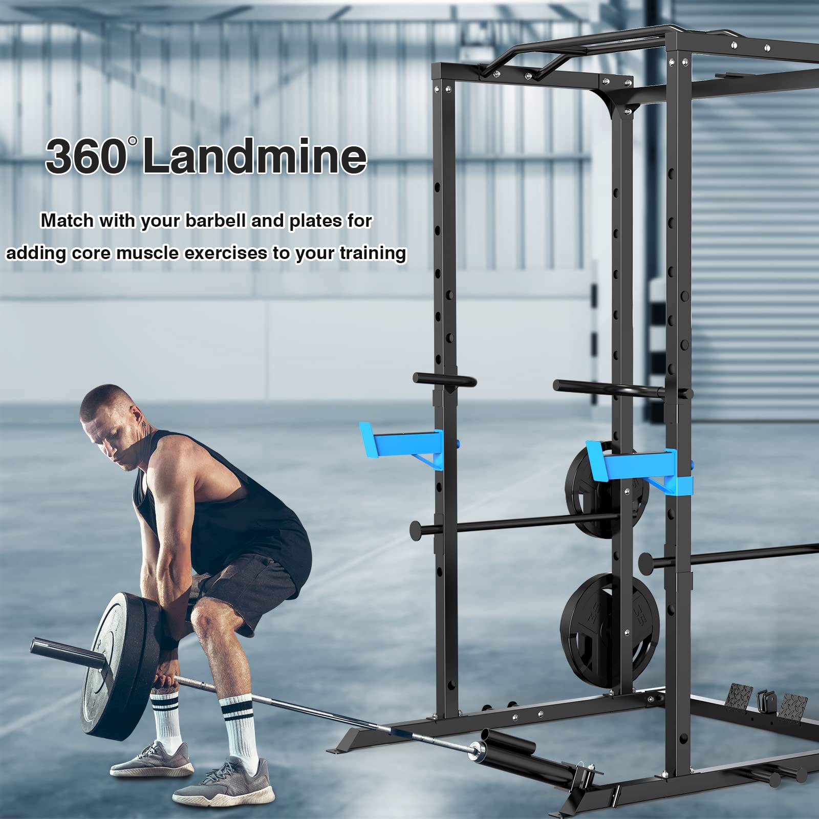 Multi-Functional Power Cage with J-Hooks, Dip Handles, Landmine Attachment, and Optional Cable Pulley System for Home Gym Workouts
