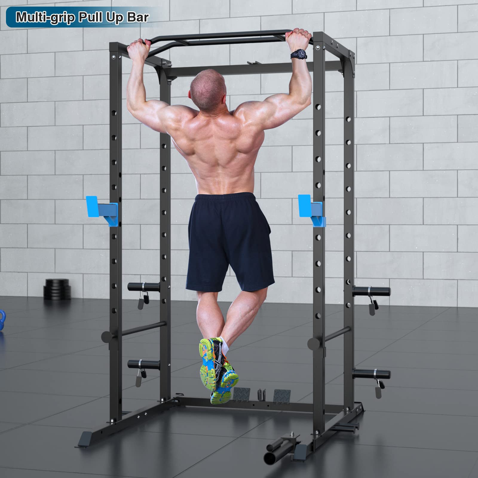 - [FULL-BODY WORKOUT] - ULTRA FUEGO power rack cage not only can be performed on the mainframe including squat, bench press, pull up /chin up, dip station, push up etc. It is also equipped with upper and lower pulley system for lat pulls down, bicep curl, seated rowing.
