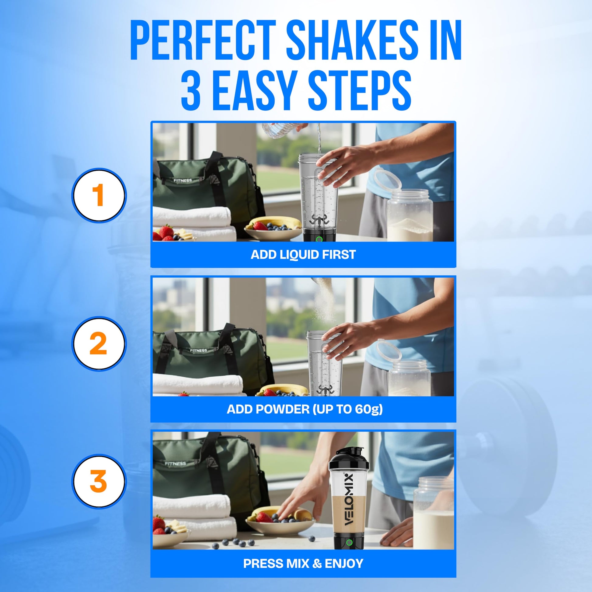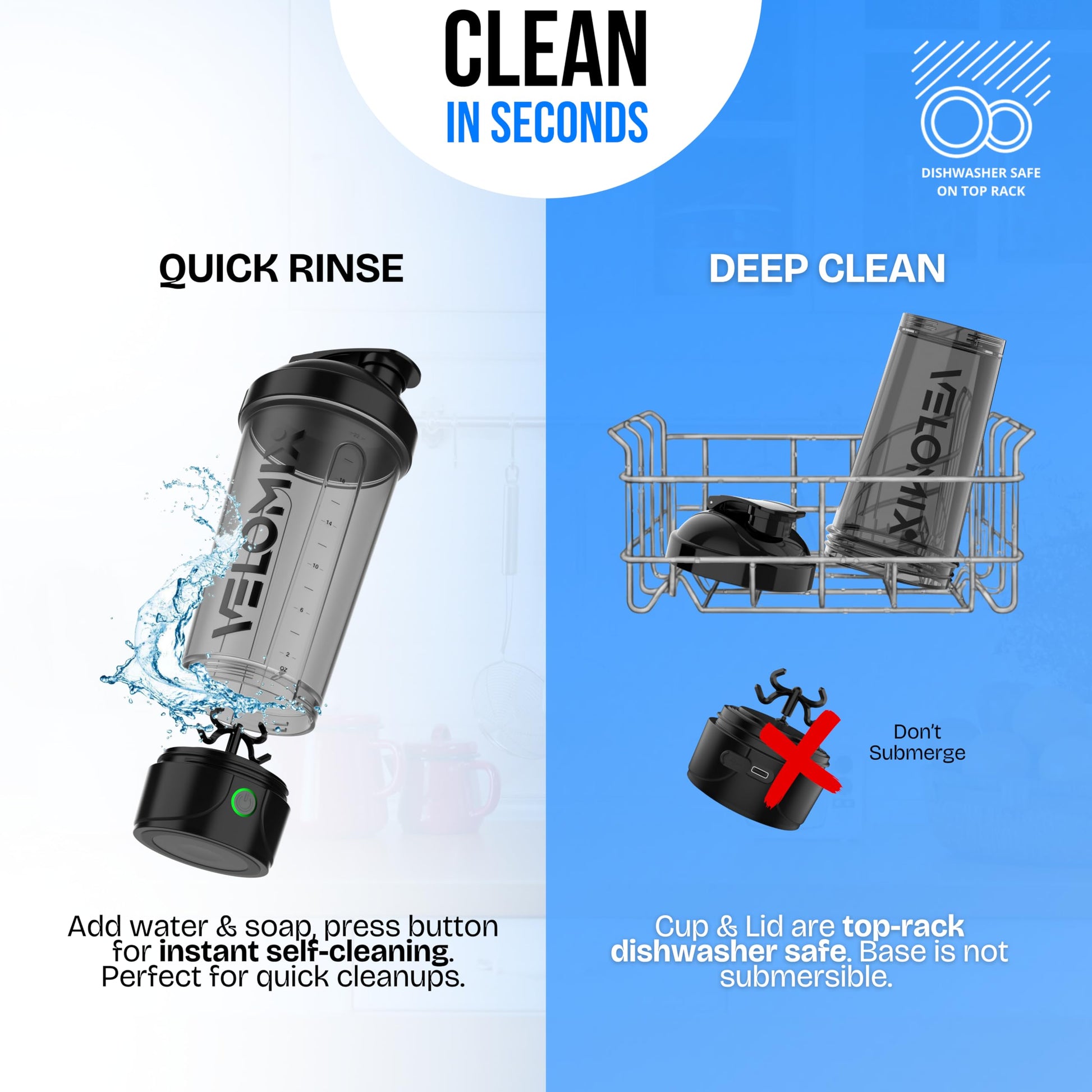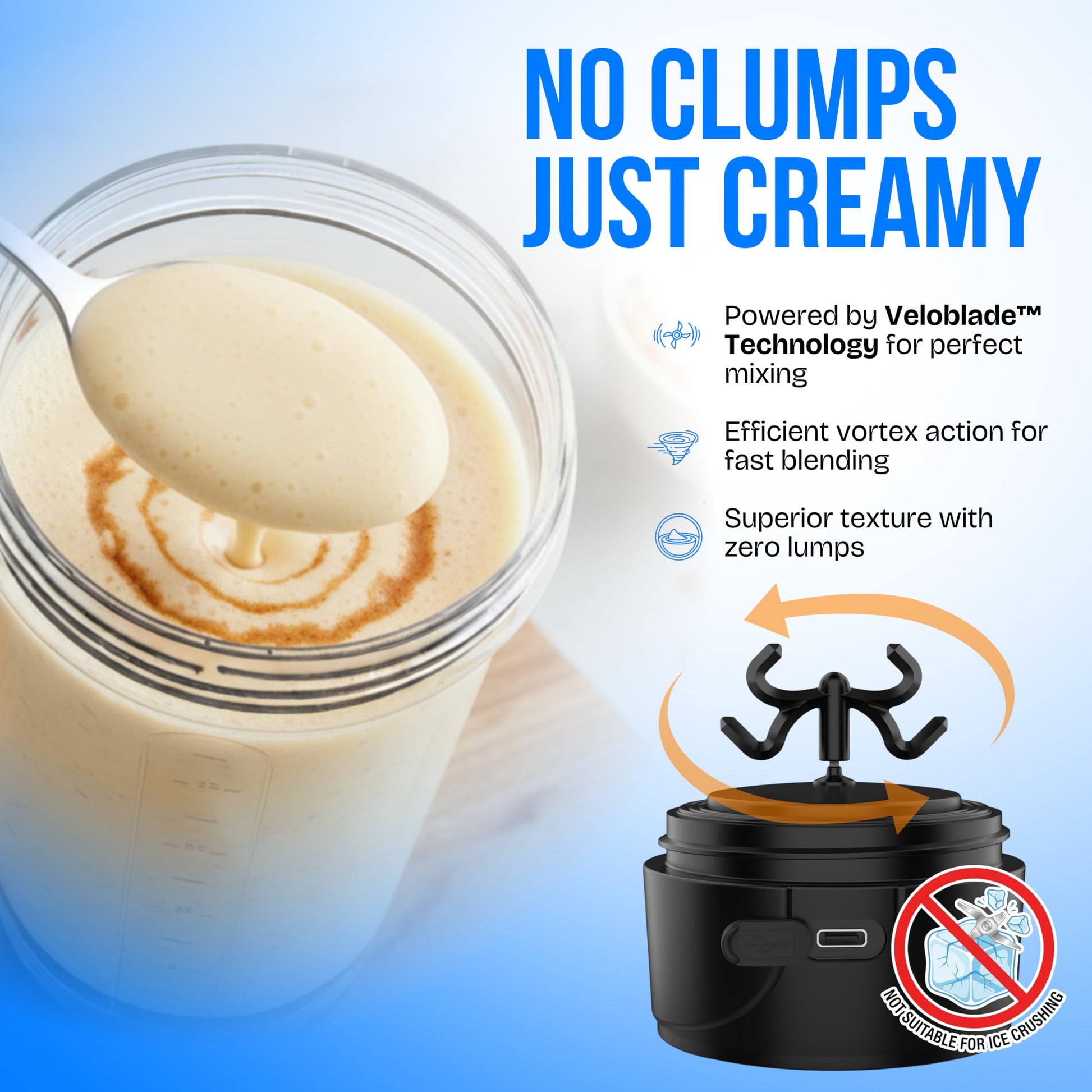 VELOMIX Electric Protein Shaker Bottle (24oz) – USB-C Rechargeable, Leak-Proof Automatic Mixer Cup – Portable Electric Blender Bottle for Protein Shakes, Smoothies & Pre-Workout Drinks (Black)