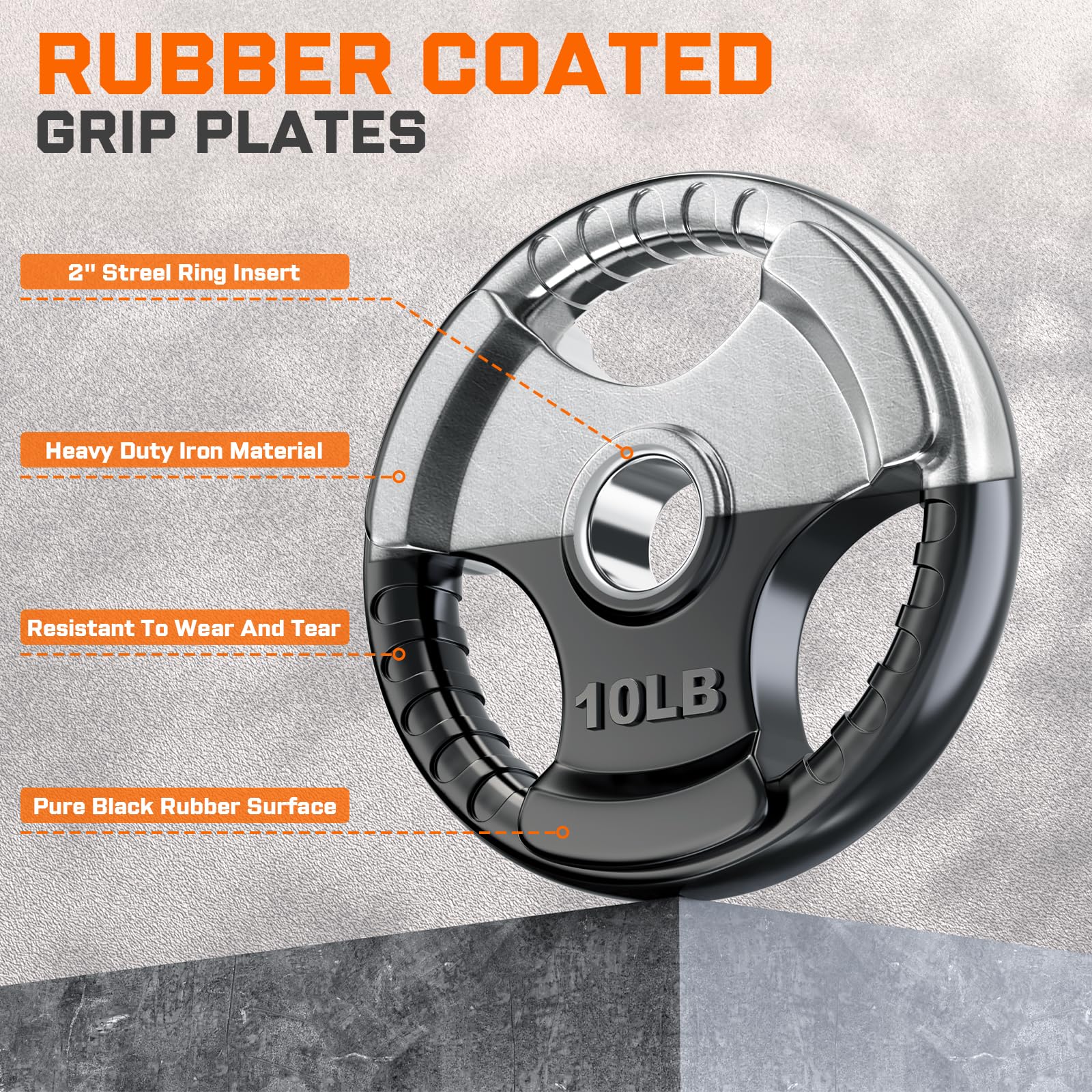 XDDIAS 2-Inch Olympic Rubber Weight Plates, Solid Cast Iron Grip Plates for Strength Training, Weightlifting, and Bodybuilding – Pairs and Sets for Home or Gym