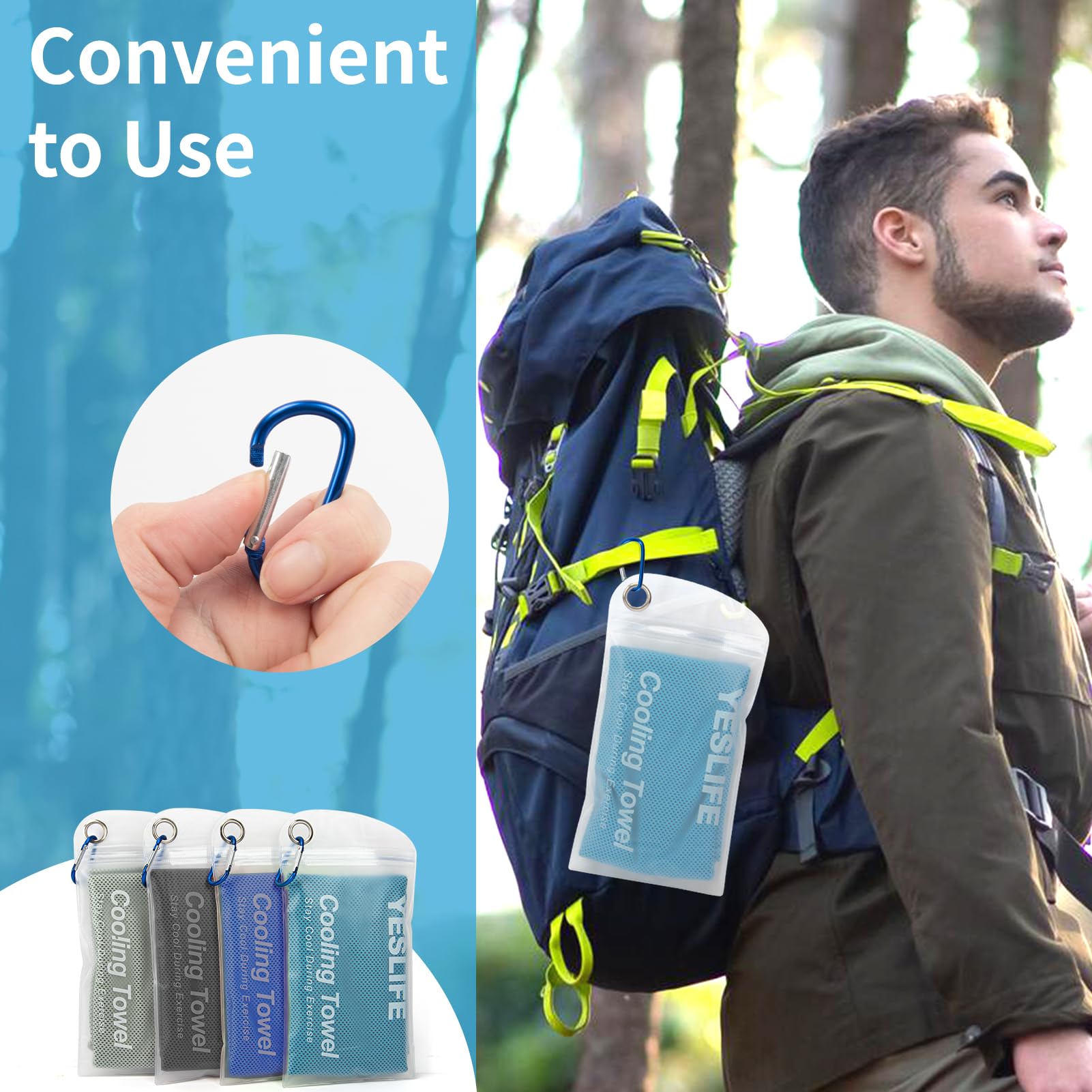 YESLIFE 4 Pack Cooling Towels (40"x12") – Soft, Breathable Gym Towels for Men & Women | Quick Dry Workout Towels for Yoga, Running, Sports & Outdoor Activities (Black, Dark Blue, Blue, Grey)